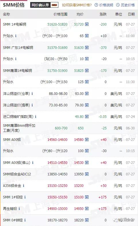 俊霖合金解讀:7月27日有色金屬行情