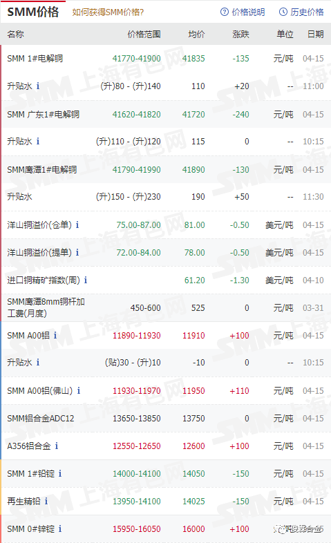 您現(xiàn)在所在位置:首頁?新聞資訊?行業(yè)新聞-俊霖合金解讀:4月15日有色金屬行情行業(yè)新聞