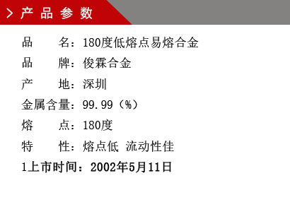 180度低熔點(diǎn)易熔合金產(chǎn)品說(shuō)明